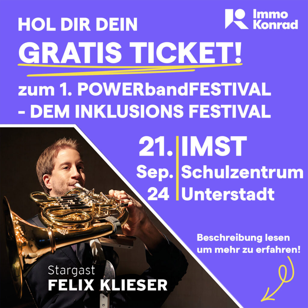 Wir sind stolz, das 1. POWERbandFESTIVAL – DAS Inklusions Festival in Westtirol in Imst zu unterstützen und 50 Freikarten an Musikbegeisterte wie dich zu verschenken! Dieses Festival gehört zu den Highlights in Tirol und steht für erstklassige Musik, unvergessliche Stimmung und jede Menge Spaß. Ob lokale Künstler oder internationale Acts – hier ist für jeden Musikgeschmack etwas dabei.
